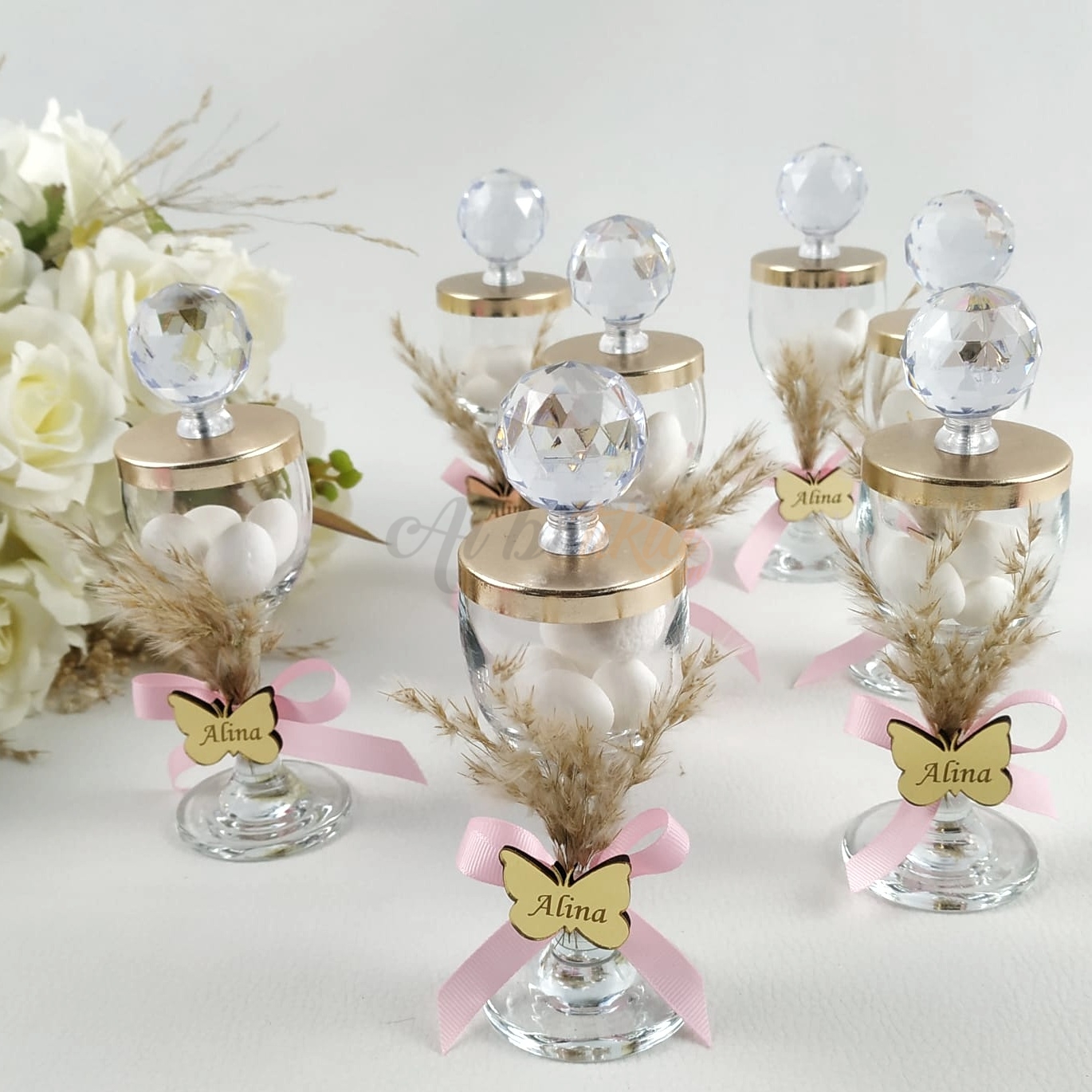 El emeğiyle hazırlanmış badem şekerli kadeh hediyelik, davetlileriniz için her biri özenle hazırlanmış ve kaliteli malzemelerle üretilmiştir.