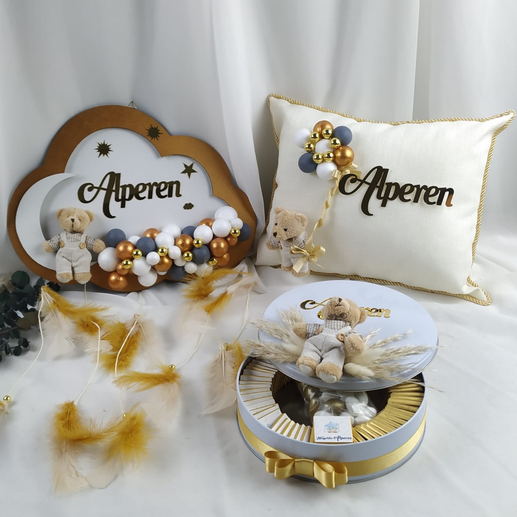 Bebek Harf Kapı Süsü, Yastık ve Çikolata Seti