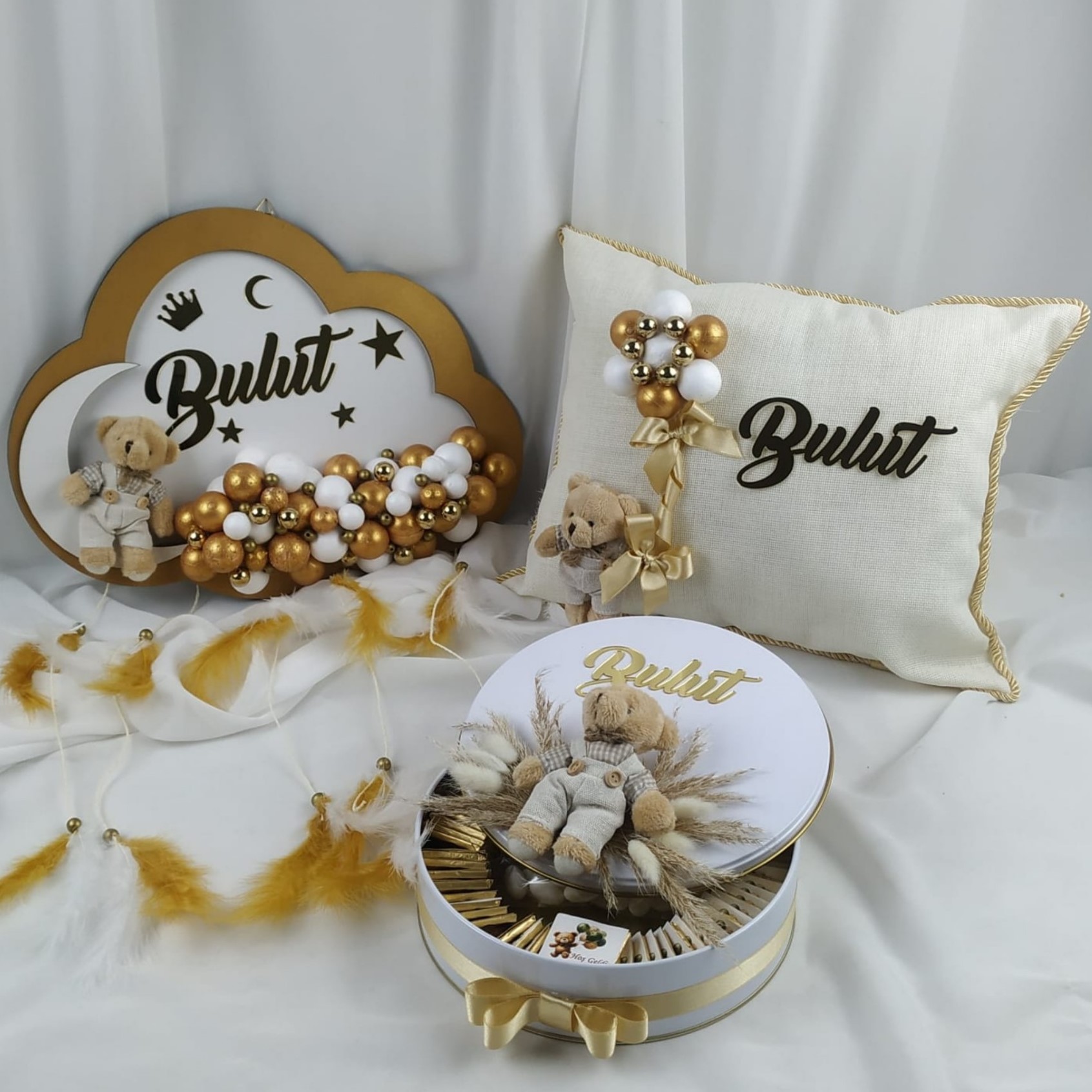 Bebek Bulut Kapı Süsü, Yastık ve Çikolata Seti
