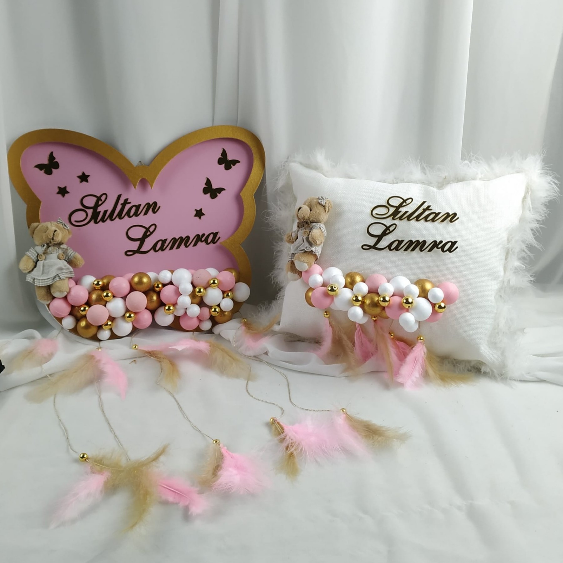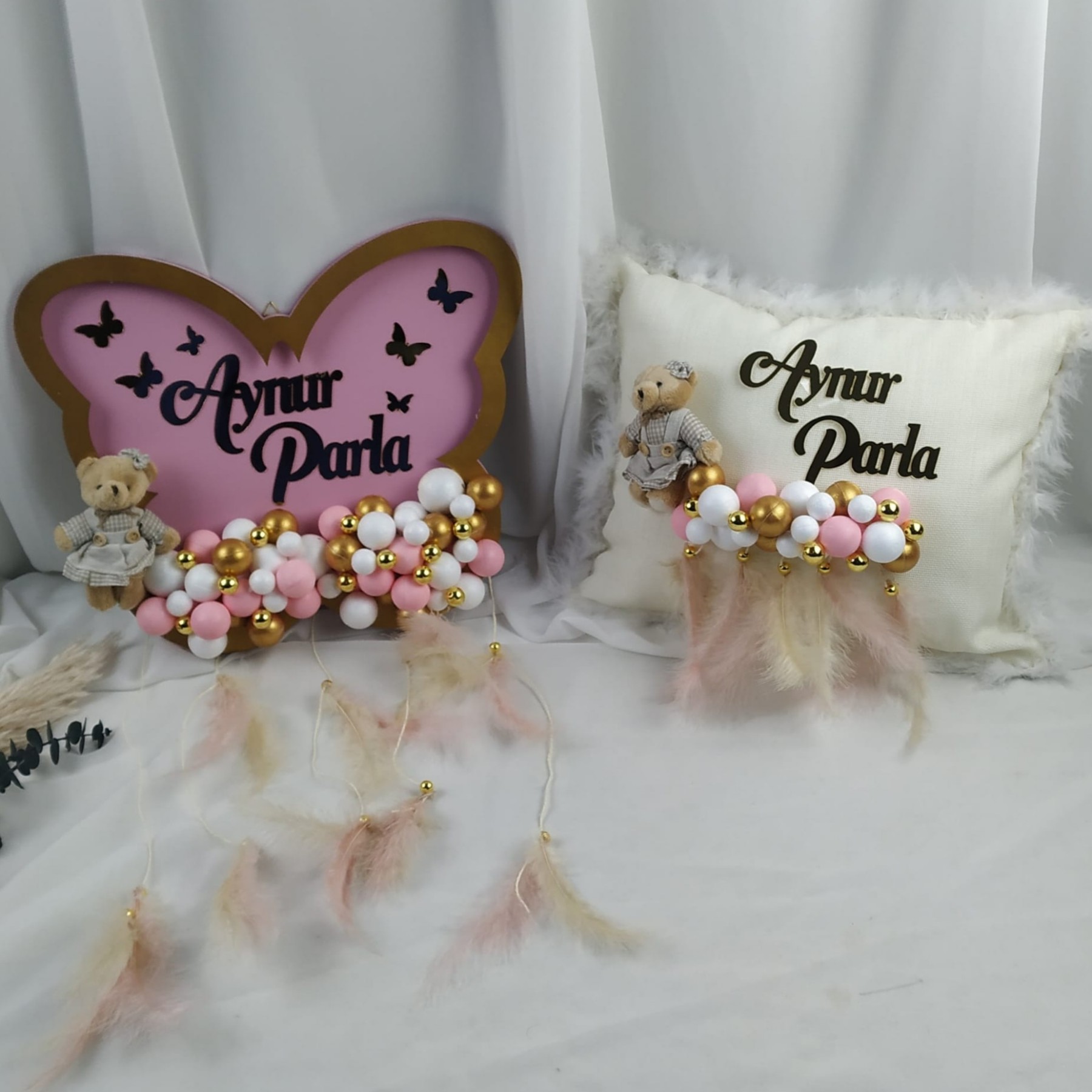 Bebek Kelebek Kapı Süsü ve Yastık Seti