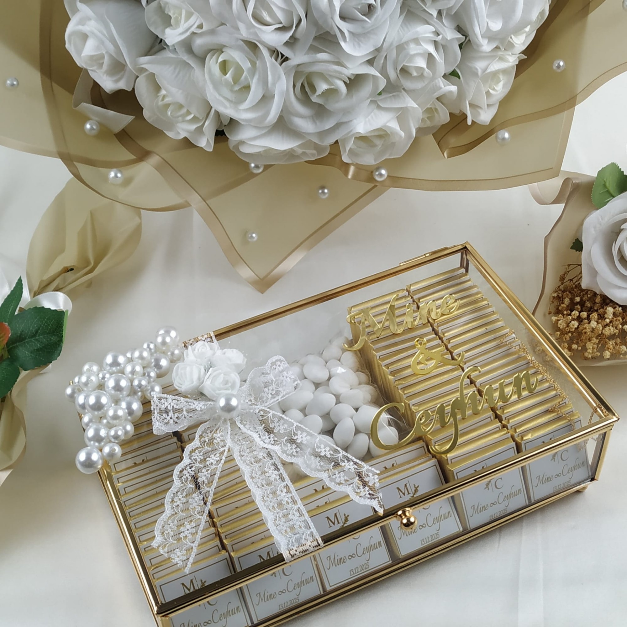 Buket ve Cam Kutu Söz Nişan Çikolatası