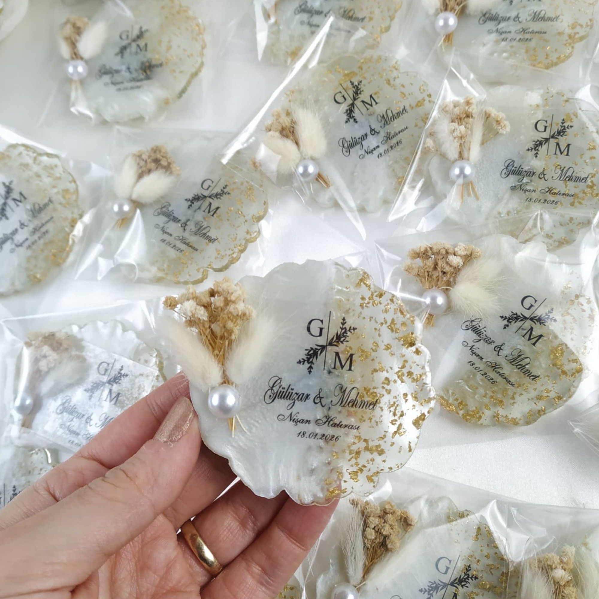 El emeğiyle hazırlanmış çiçekli epoksi magnet hediyelik, davetlileriniz için her biri özenle hazırlanmış ve kaliteli malzemelerle üretilmiştir.