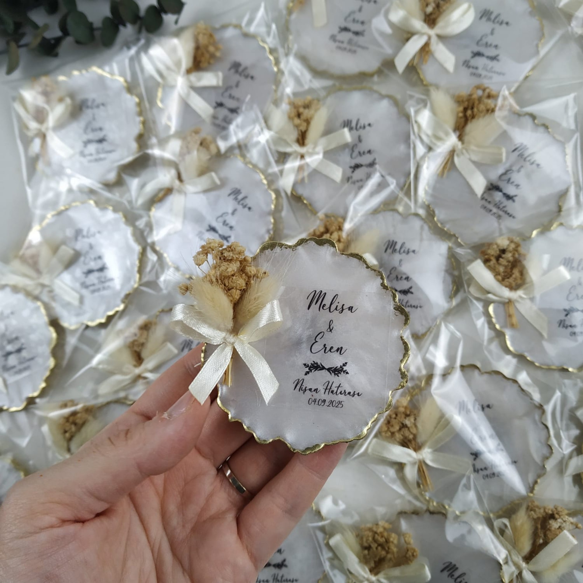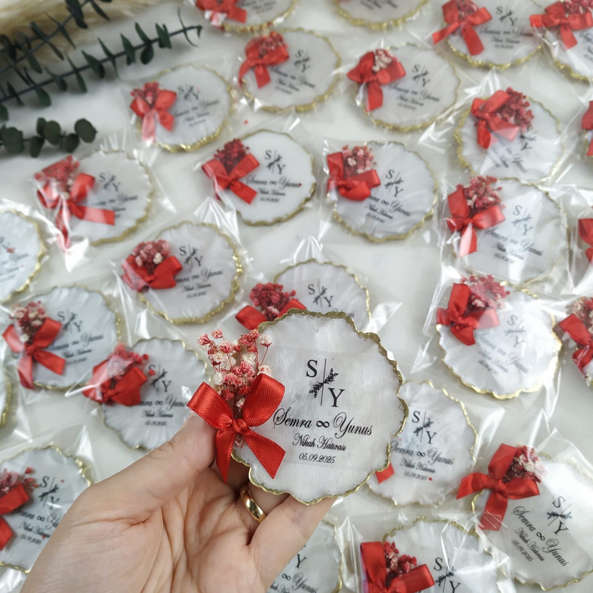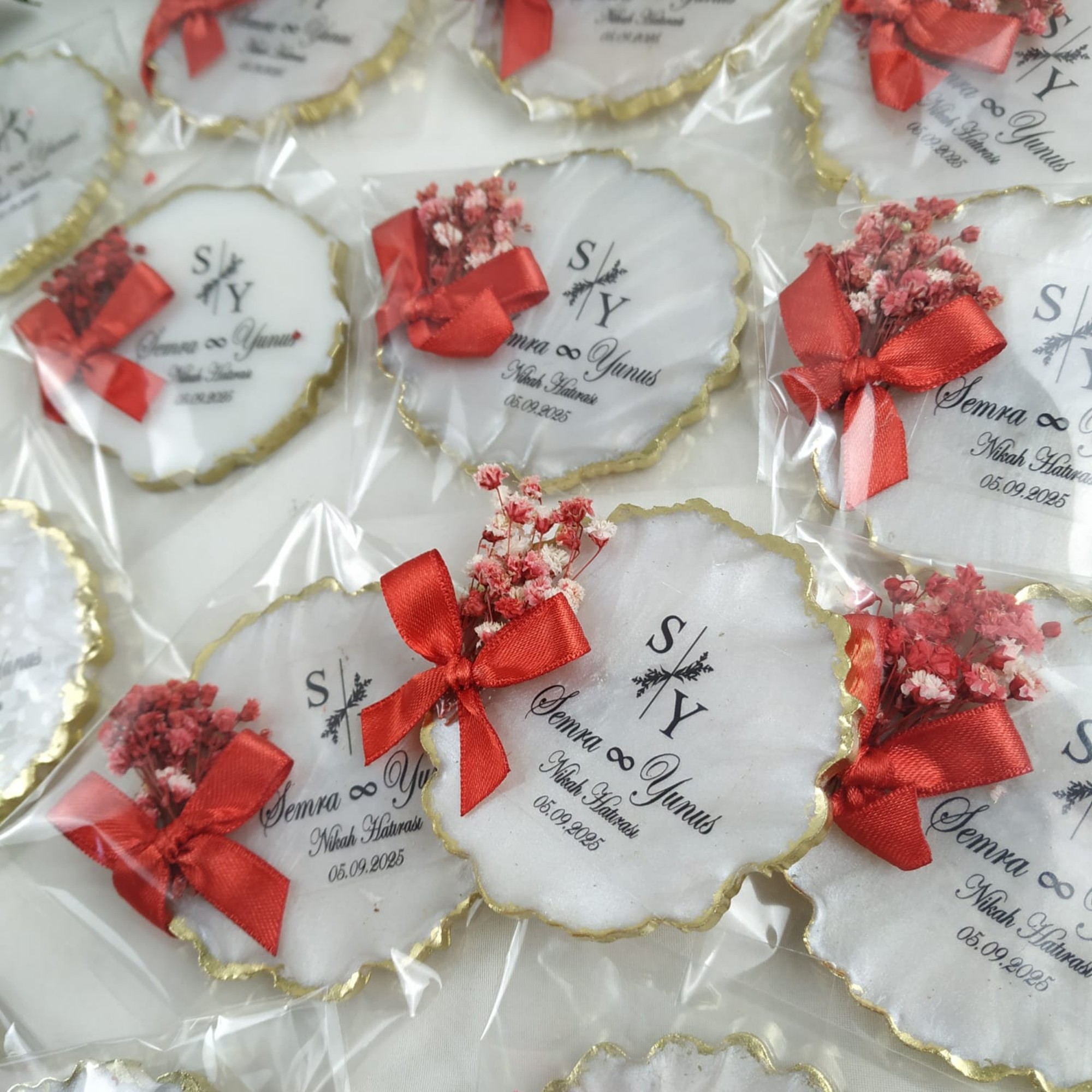 El emeğiyle hazırlanmış dekoratif çiçekli epoksi magnet hediyelik, davetlileriniz için her biri özenle hazırlanmış ve kaliteli malzemelerle üretilmiştir.