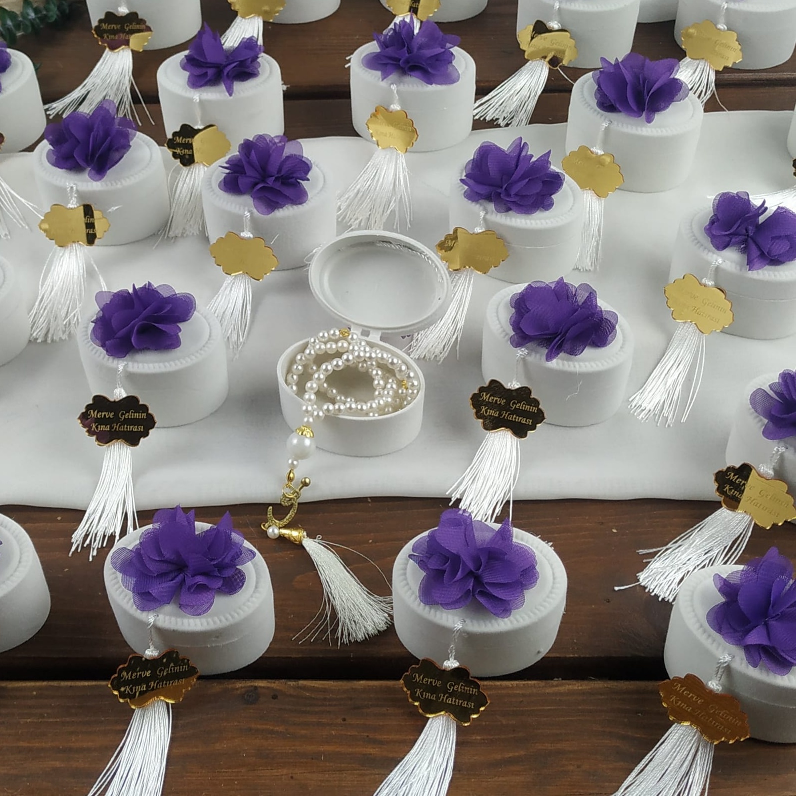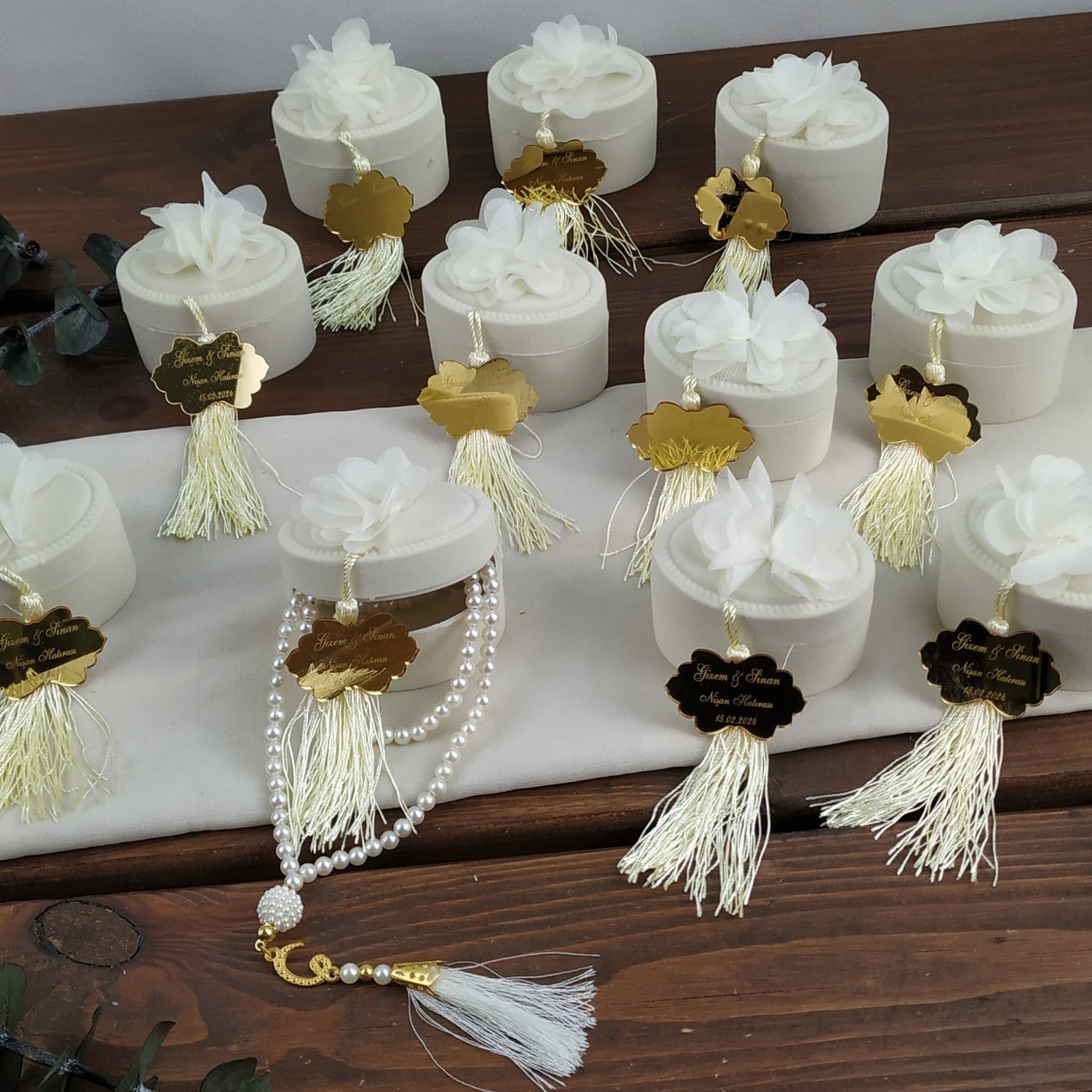 El emeğiyle hazırlanmış flok kutuda tespih hediyelik, davetlileriniz için her biri özenle hazırlanmış ve kaliteli malzemelerle üretilmiştir.