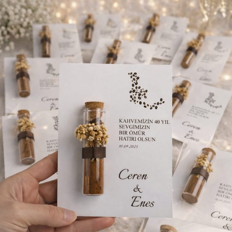 El emeğiyle hazırlanmış çikolata, kaşık ve kahve hediyelik, davetlileriniz için her biri özenle hazırlanmış ve kaliteli malzemelerle üretilmiştir.