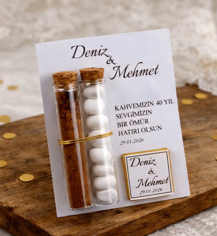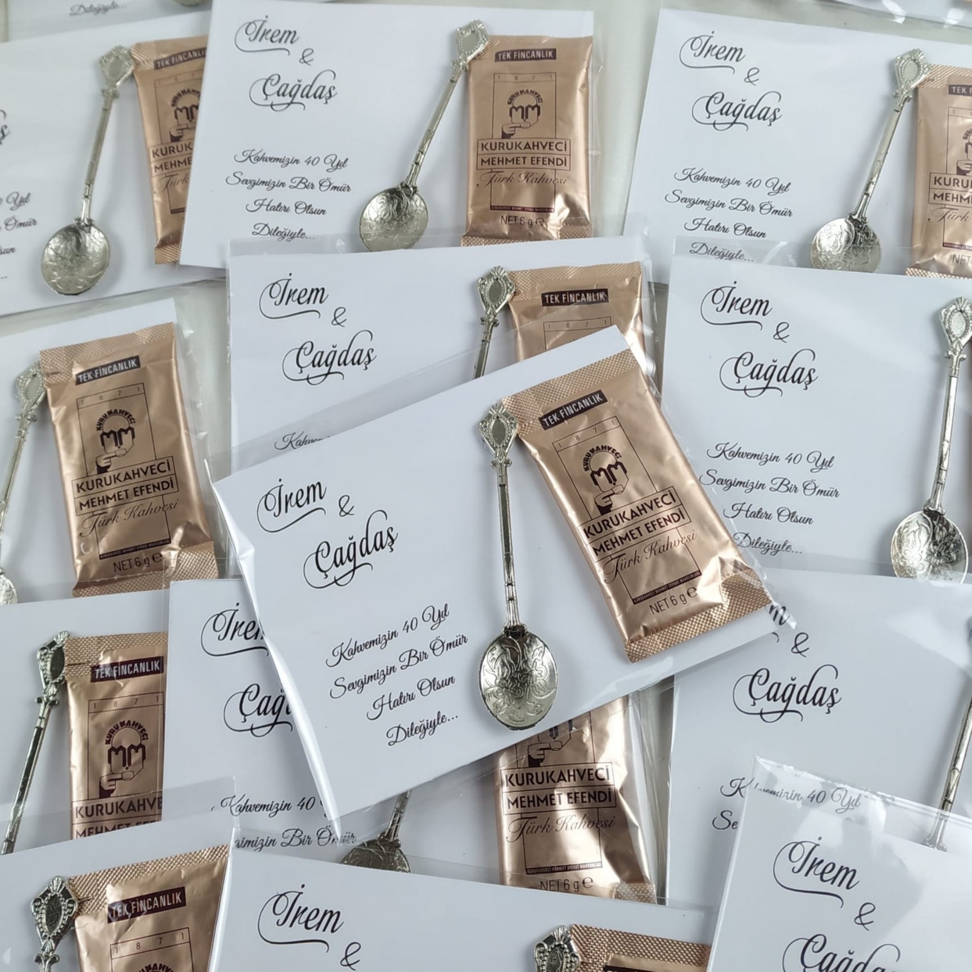 El emeğiyle hazırlanmış kaşık ve kahve hediyelik, davetlileriniz için her biri özenle hazırlanmış ve kaliteli malzemelerle üretilmiştir.