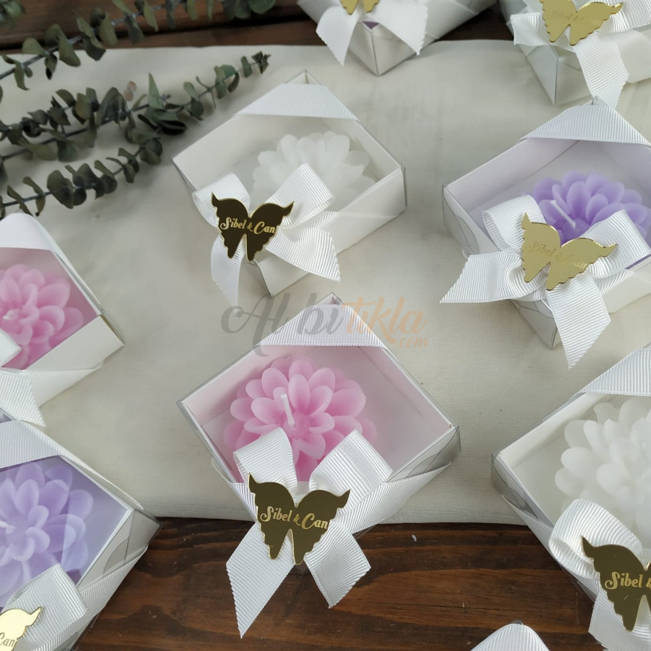 El emeğiyle hazırlanmış dekoratif lotus mum hediyelik, davetlileriniz için her biri özenle hazırlanmış ve kaliteli malzemelerle üretilmiştir.