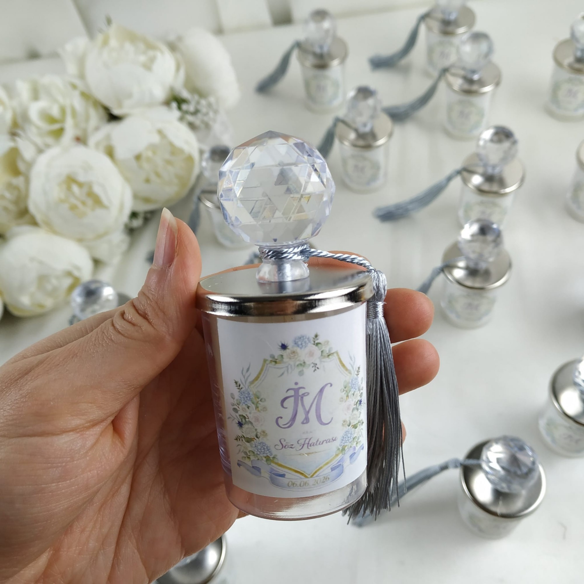 El emeğiyle hazırlanmış dekoratif mum hediyelik, davetlileriniz için her biri özenle hazırlanmış ve kaliteli malzemelerle üretilmiştir.
