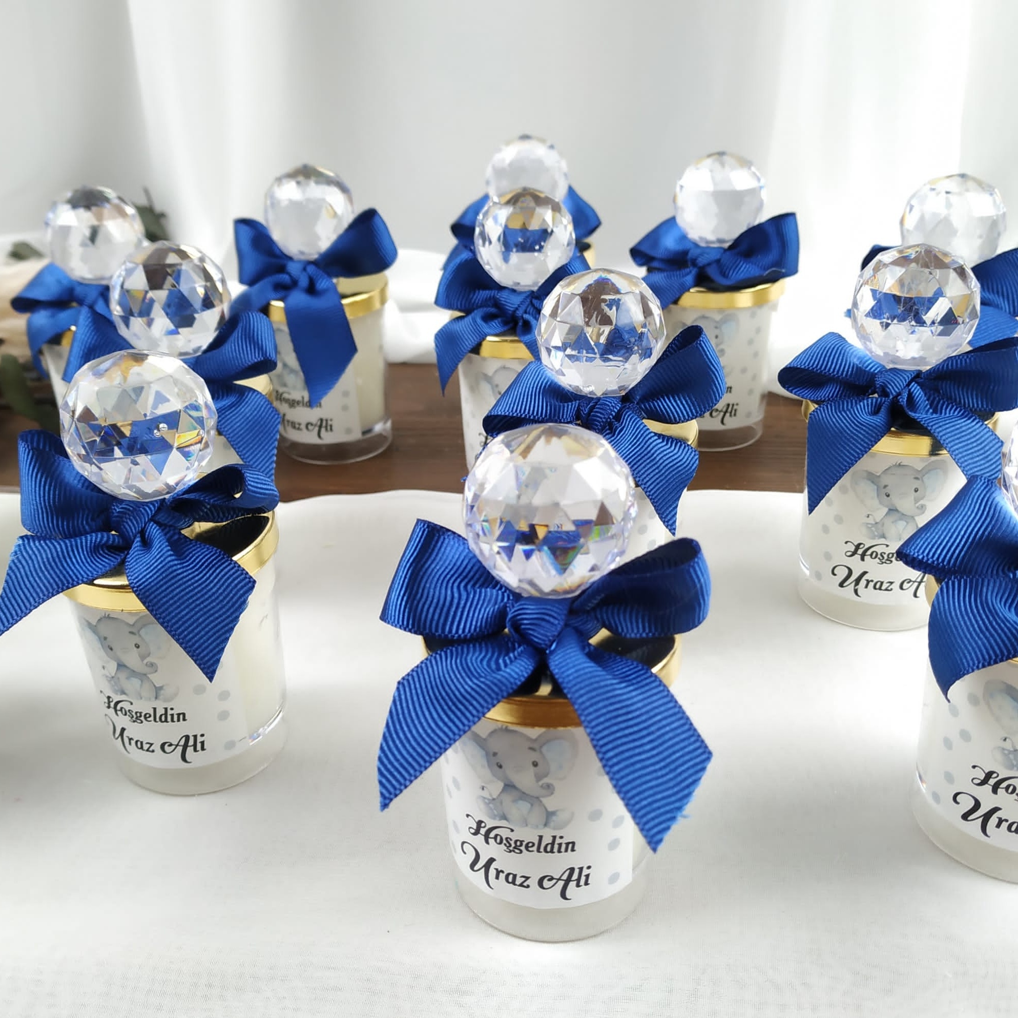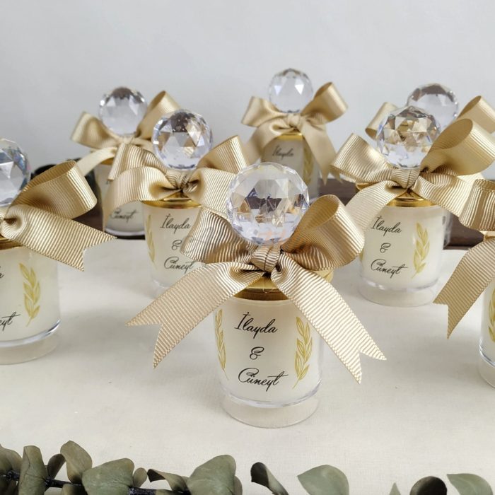 El emeğiyle hazırlanmış dekoratif mum hediyelik, davetlileriniz için her biri özenle hazırlanmış ve kaliteli malzemelerle üretilmiştir.