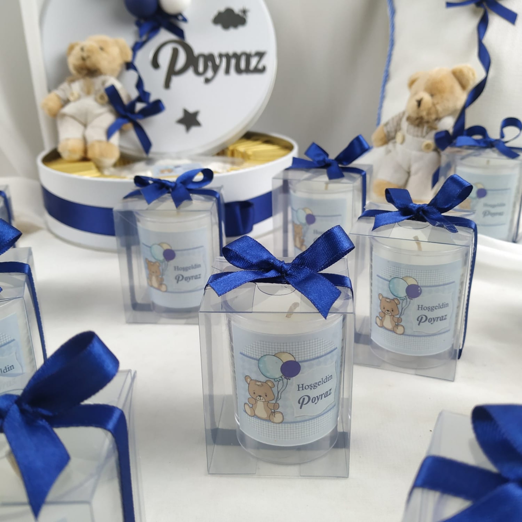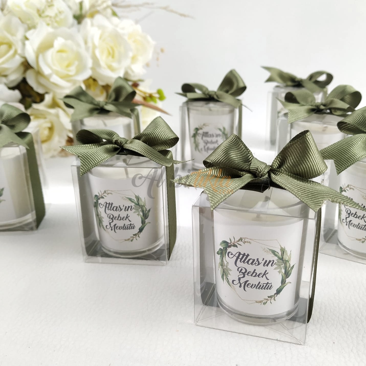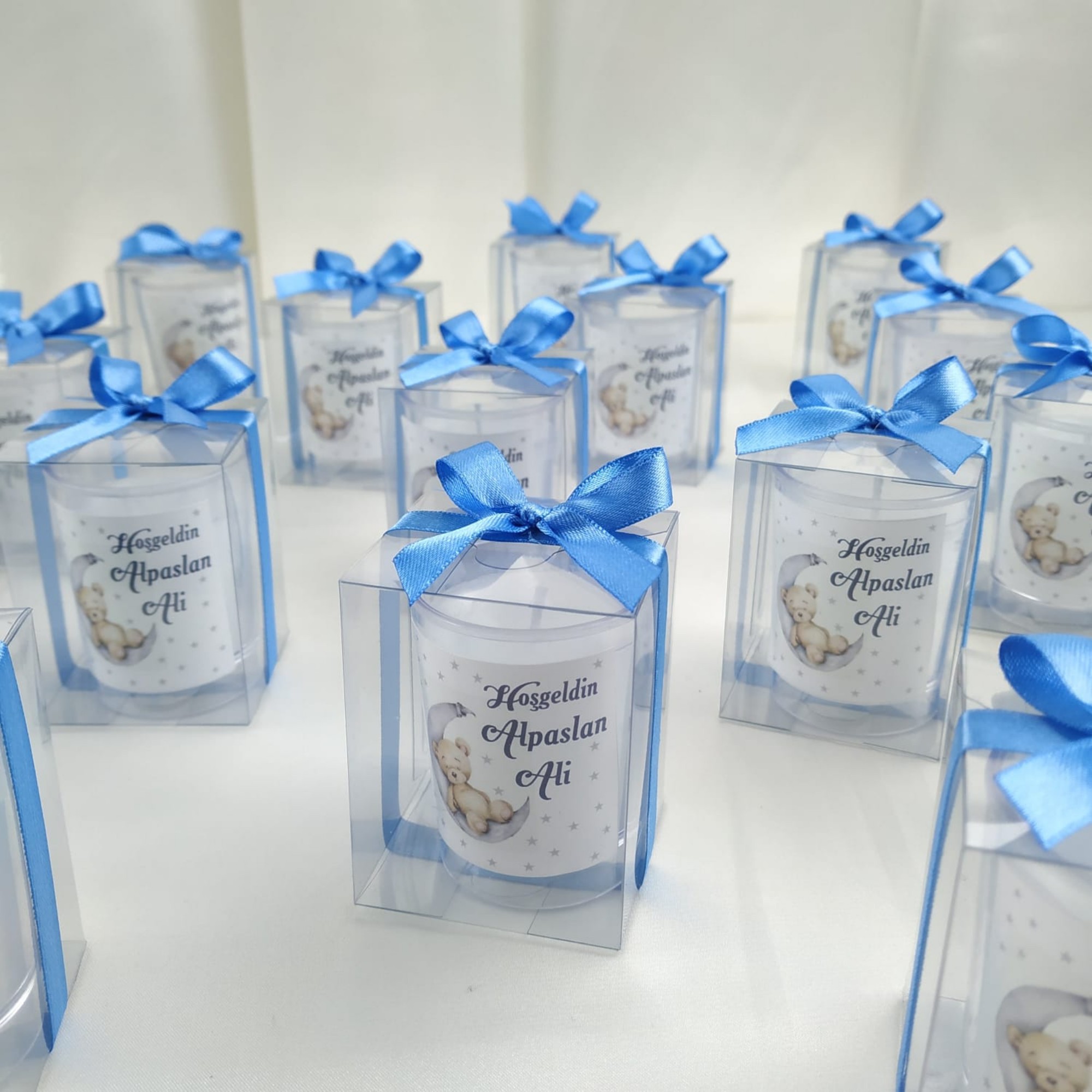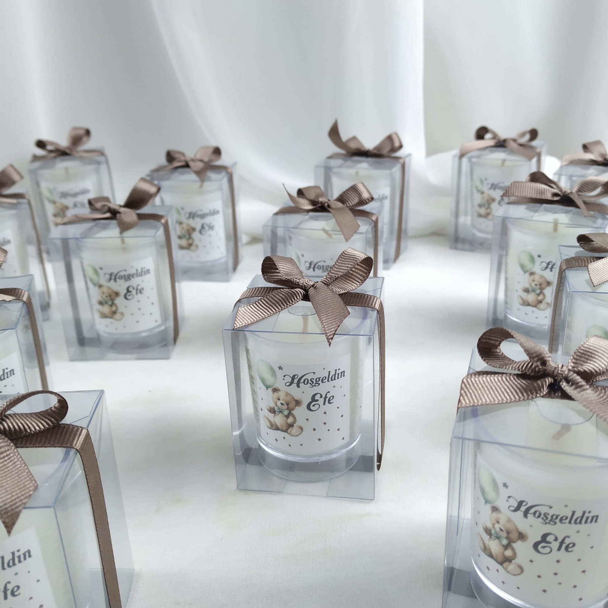 El emeğiyle hazırlanmış dekoratif mum hediyelik, davetlileriniz için her biri özenle hazırlanmış ve kaliteli malzemelerle üretilmiştir.