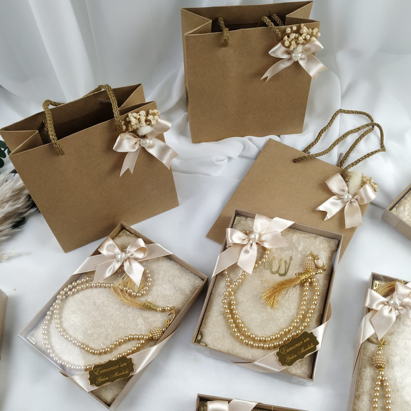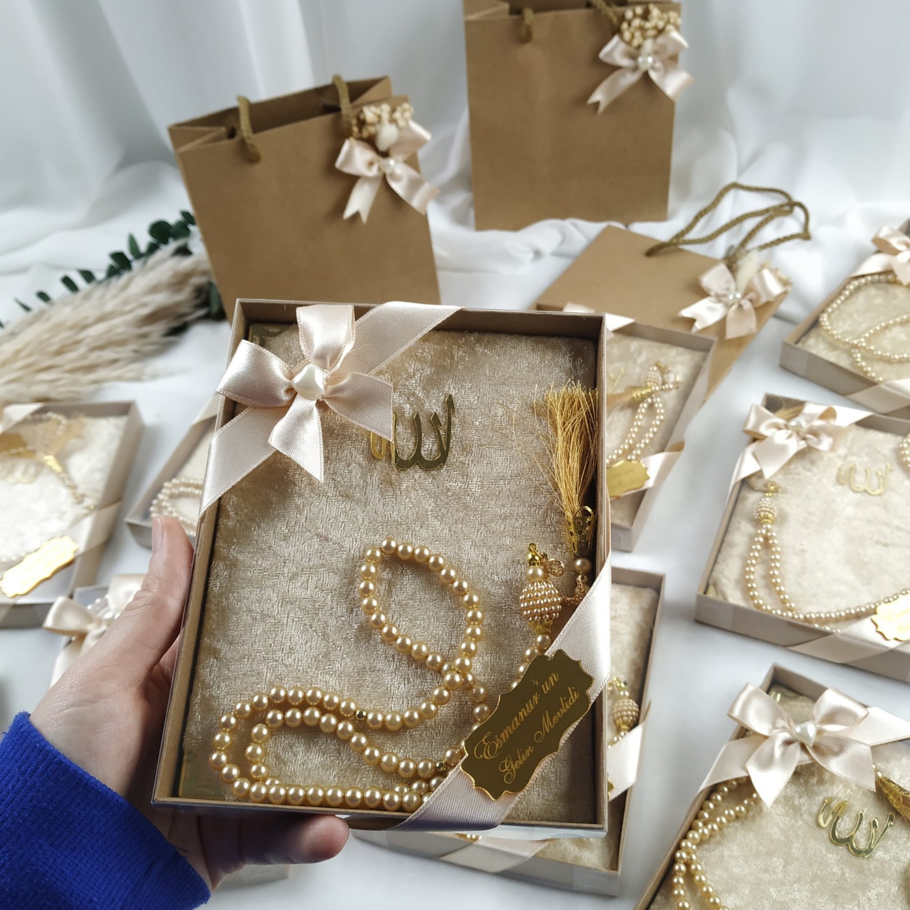 El emeğiyle hazırlanmış özel çantasında tespih ve Yasin-i Şerif hediyelik, davetlileriniz için her biri özenle hazırlanmış ve kaliteli malzemelerle üretilmiştir.