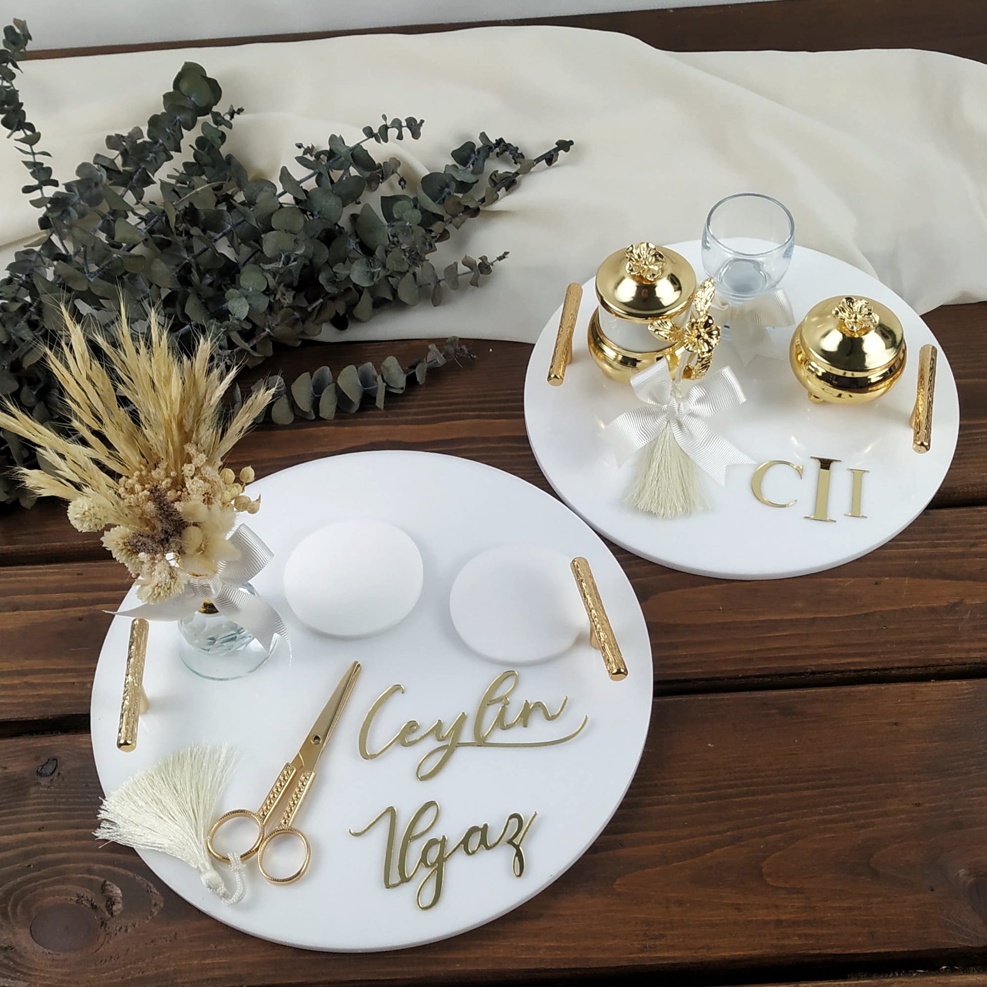 İsim ve tarih kişiselleştirmesiyle tamamen size özel hale getirilen bu zarif tepsi seti, sadece bir aksesuar değil, yıllar sonra bile aynı duyguyu yaşatacak, sevginizin simgesi olacak bir hatıra.