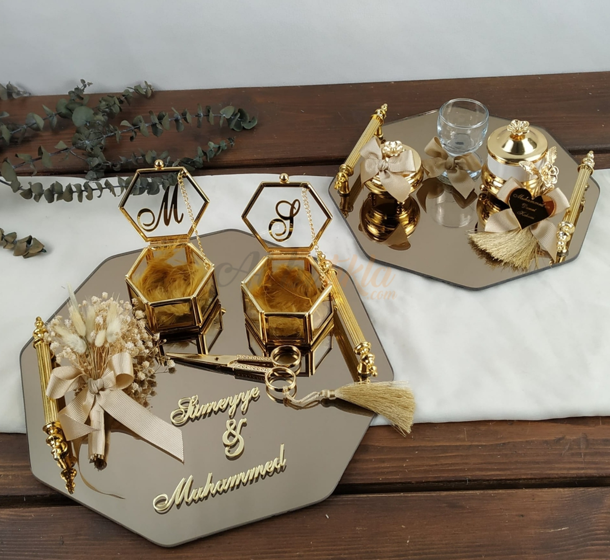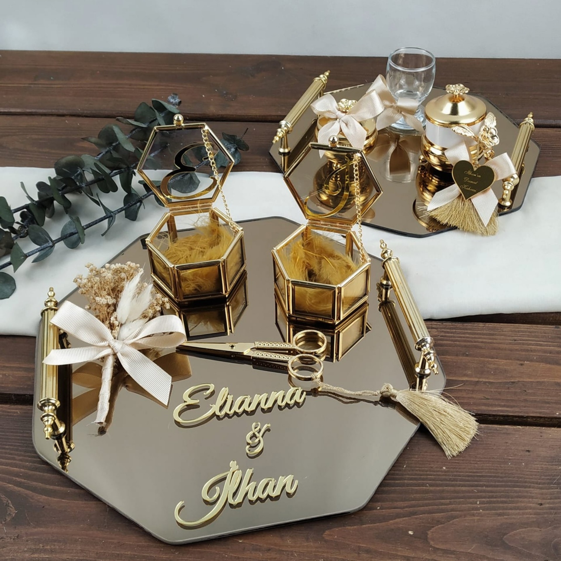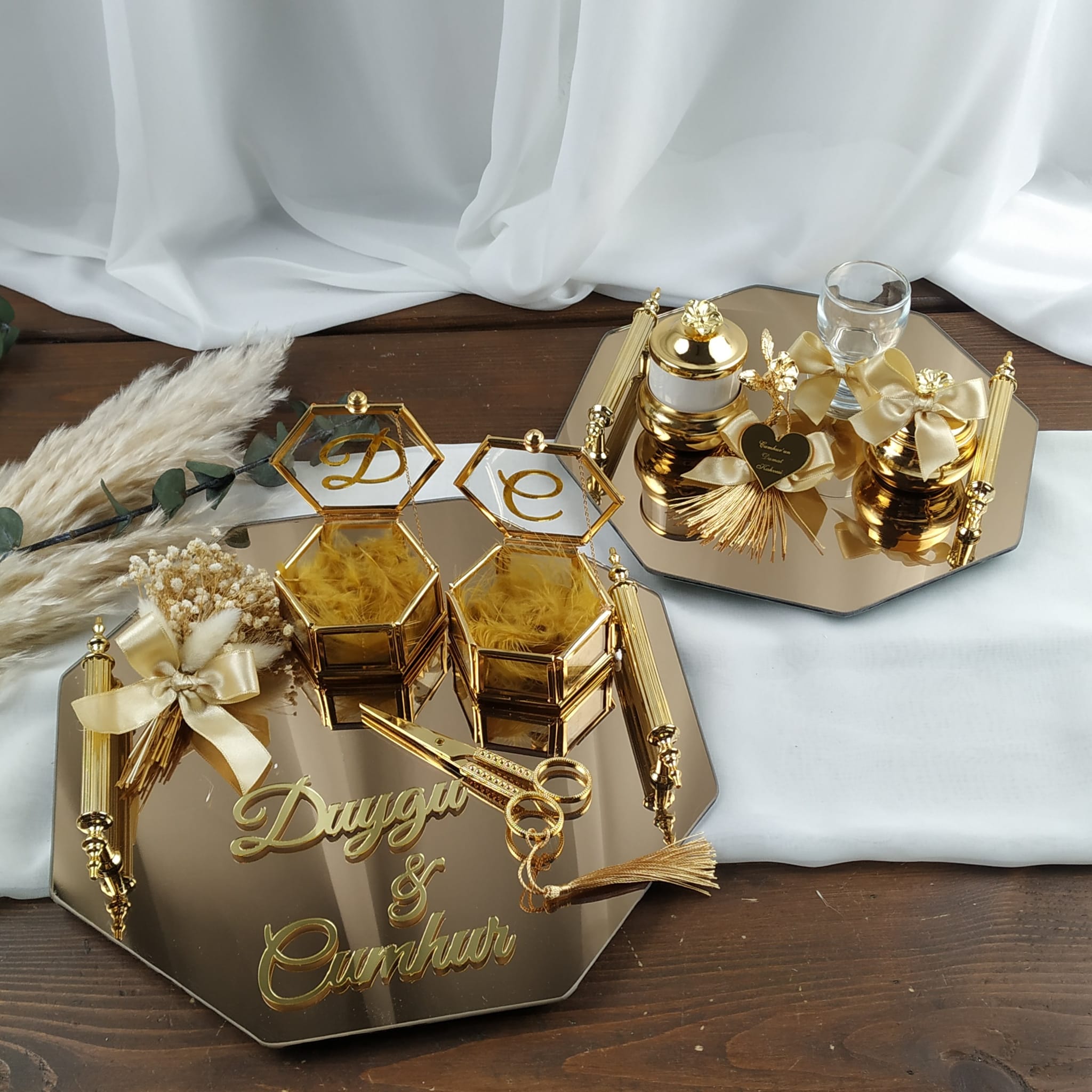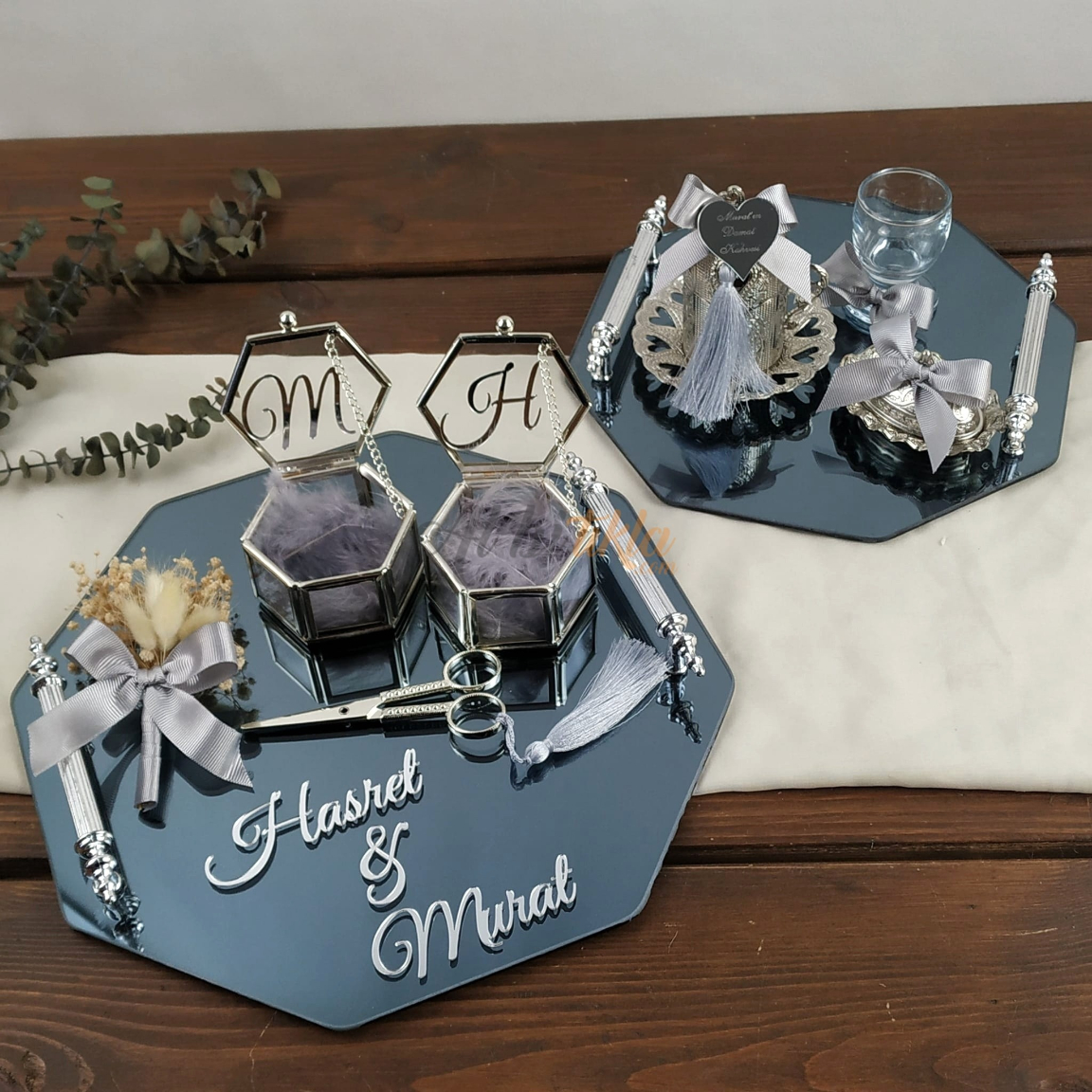 İsim ve tarih kişiselleştirmesiyle tamamen size özel hale getirilen bu zarif tepsi seti, sadece bir aksesuar değil, yıllar sonra bile aynı duyguyu yaşatacak, sevginizin simgesi olacak bir hatıra.