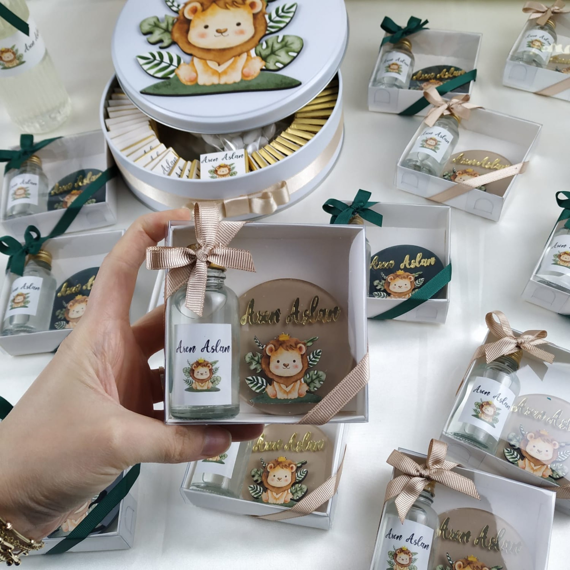El emeğiyle hazırlanmış UV baskılı pleksi safari aslan magnet ve kolonya hediyelik, davetlileriniz için her biri özenle hazırlanmış ve kaliteli malzemelerle üretilmiştir.